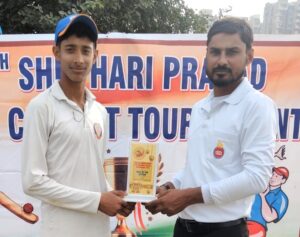 गाजियाबाद। राजनगर एक्सटेंशन गाजियाबाद जीएमएस क्रिकेट ग्राउंड में चल रहे शिव हरी प्रसाद अंदर 15 क्रिकेट टूर्नामेंट का आज लीग मैच का आखिरी मुकाबला पीस क्रिकेट अकादमी ओर वसुंधरा रेंजर्स क्रिकेट अकादमी के बीच में खेला गया। पीस अकादमी ने पहले टॉस जीतकर बल्लेबाजी करते हुए 40 ओवर में 6 विकेट होकर 266 बनाएं। जिसमें आरव द्विवेदी 36 रन, आयुष कुमार 53 रन, निखिल पांडे 97 रन, आवेदन पांडे 15 रन का योगदान दिया। वसुंधरा रेंजर्स क्रिकेट अकादमी की तरफ से शिवम यादव ने 2 विकेट लिए, अयान त्यागी 2 विकेट, अंश ने 1 ओर संभव 1 विकेट लिया। बाद में बैटिंग करते हो वसुंधरा रेंजर्स क्रिकेट अकादमी ने 31 .3 ओवर में 10 विकेट खोकर 195 रन ही बना पायी। जिसमें शिव शर्मा 23 रन, अंश 51 रन, आर्यन त्यागी 31 रन, अंशुल 20 रन, ग्रंथिका 15 रन, शौर्य पाल 15 रन का योगदान दिया। पीस अकादमी की ओर से गेंदबाजी करते हुए निर्वाण 5 विकेट, शिवांश ने 2 विकेट, गौरांश 1, शिखर ने 1, मोक्ष 1 विकेट चटकाए। पीस अकादमी ने वसुंधरा रेंजर्स अकादमी को 71 रन से हराया। मैच का मैन ऑफ द मैच का पुरस्कार निखिल पांडे को दिया गया। टूर्नामेंट का फाइनल मुकाबला डी आर जे पी क्रिकेट अकादमी ओर वि आर XI के बीच 12 तारीख को जीएमएस क्रिकेट ग्राउंड राज नगर में खेला जाएगा।