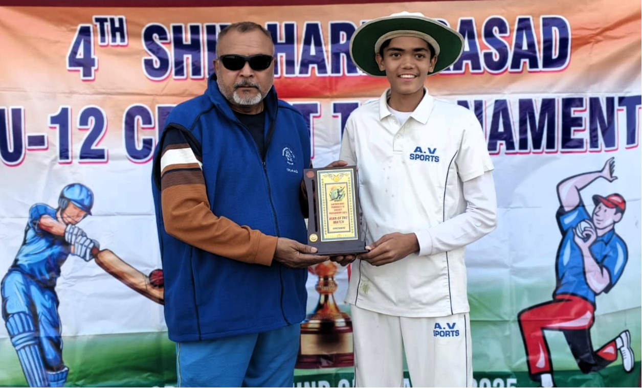 गाजियाबाद। गाजियाबाद राज नगर एक्सटेंशन जीएमएस क्रिकेट ग्राउंड में चल रहे अंडर-12 क्रिकेट टूर्नामेंट में आज का मैच वीनस क्रिकेट एकेडमी और बीआर क्रिकेट एकेडमी के बीच खेल गया। पहले टॉस जीतकर बीआर क्रिकेट एकेडमी ने बैटिंग करने का फैसला लिया। बीआर क्रिकेट एकेडमी ने पहले बल्लेबाजी करते हुए 36,3 ओवर में 210 रन पर आल आउट हो गयी। अक्षत माटेला ने 100 रन बना, सिद्धार्थ ने 18 , प्रेम नागिन 21 और शिवांश ने 12 रन बनाएं। वीनस अकैडमी बोलिंग विवरण अर्णव त्यागी 3 विकेट, अजीम त्यागी 2 विकेट लिए, वीर ने 1 विकेट और लविश त्यागी ने 1 विकेट लिया। 210 रनों का पीछा करते हुए वीनस क्रिकेट अकादमी ने 27,1 ओवर में 9 विकेट खोकर 214 रन बनाकर 1 विकेट से जीत हासिल कर ली। वीनस अकैडमी की ओर से अलंकृत त्यागी 44 रन, हर्ष त्यागी 29 रन, वेदांत कसाना 44 रन, अजीम त्यागी 16 रन, विराट 12 रन और अर्णव त्यागी 16 रन बनाएं। बीआर क्रिकेट एकेडमी बोलिंग विवरण प्रेम नेगी ने 6 विकेट लिए, अभी नगर 1 विकेट ने लिए, अक्षत माटेला ने 1विकेट लिया और शौर्य ने 1 विकेट लिया। आज के मैच में मैन ऑफ द मैच का पुरस्कार किशन कुमार शर्मा ने अर्णव त्यागी को दिया।